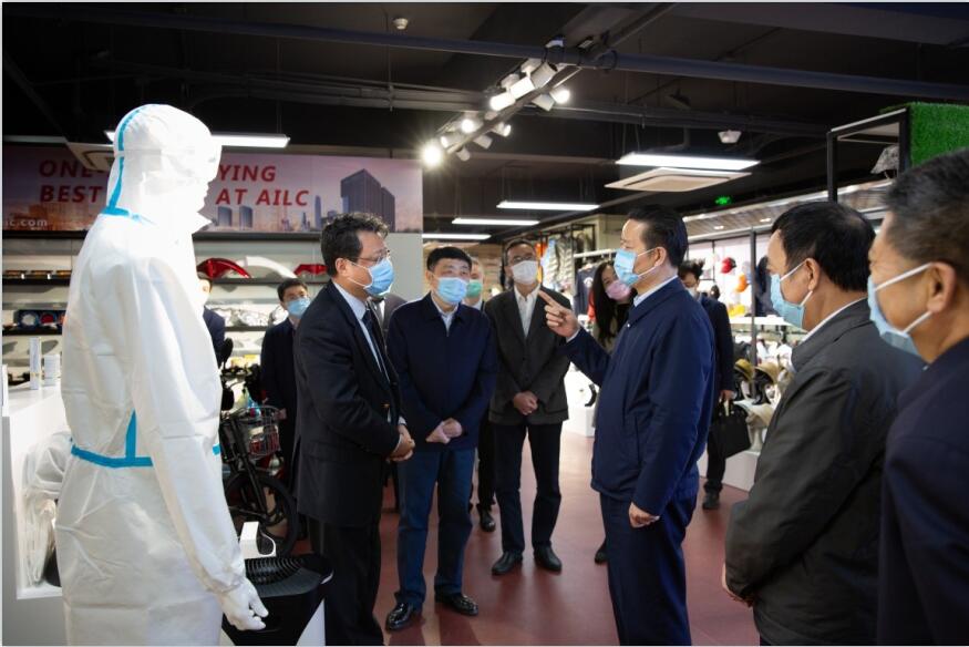 張昌爾走進(jìn)安徽輕工公司出口展廳,仔細(xì)察看產(chǎn)品,詳細(xì)詢問近期外貿(mào)出口情況和疫情對(duì)公司業(yè)務(wù)的影響,對(duì)公司積極擴(kuò)大防疫物資出口并取得良好成效予以肯定。